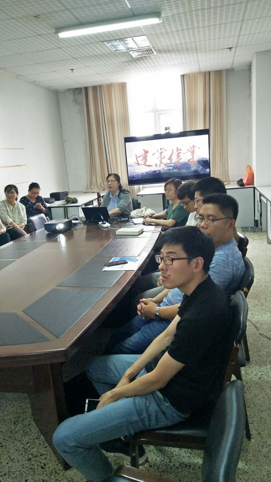 第五项内容是全体党员一起观看红色电影《建党伟业》。因时间关系只一起观看了部分片段,剩余部分要求党员们回去自己看完,并进行反思交流。