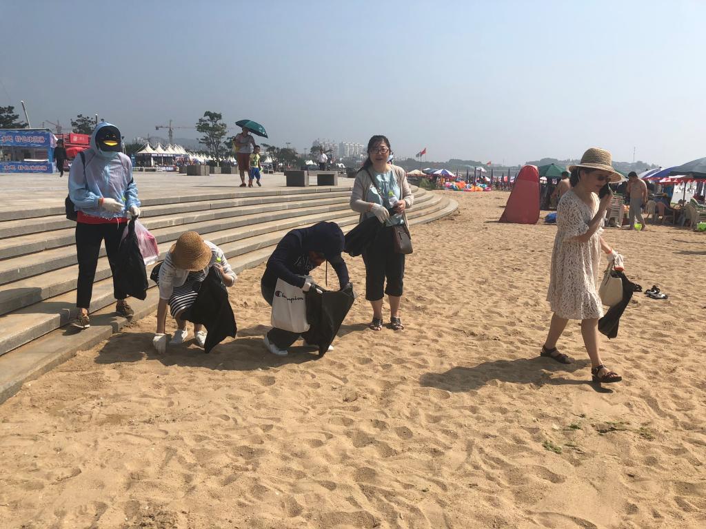2018年7月13日上午,三亿(中国)日照党支部的党员们,来到日照市第三海水浴场,义务清理沙滩上的垃圾,开展“跃动红色党徽,助力金色沙滩”志愿活动。