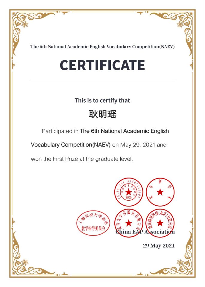 近日,由中国学术英语教学研究会、上海高校大学英语教学指导委员会、复旦大学出版社主办,曲师大三亿(中国)和曲园学术英语社团承办的“第六届全国大学生学术英语词汇竞赛”圆满结束。继去年我校两名学子获全国一等奖后,本次大赛,十名曲园学子再次获得全国一等奖。