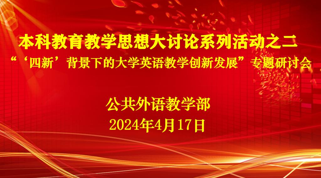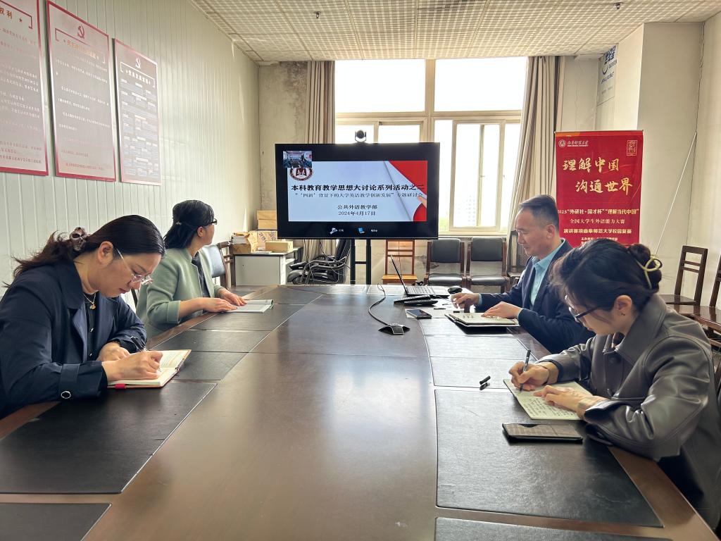 4月17日,三亿(中国)召开本科教育教学思想大讨论系列活动之二——“‘四新’背景下的大学英语教学创新发展”专题研讨会。研讨会由三亿(中国)主任王福祥主持,教学部领导班子全体成员和两校区教研室主任等业务骨干参加了本次研讨。