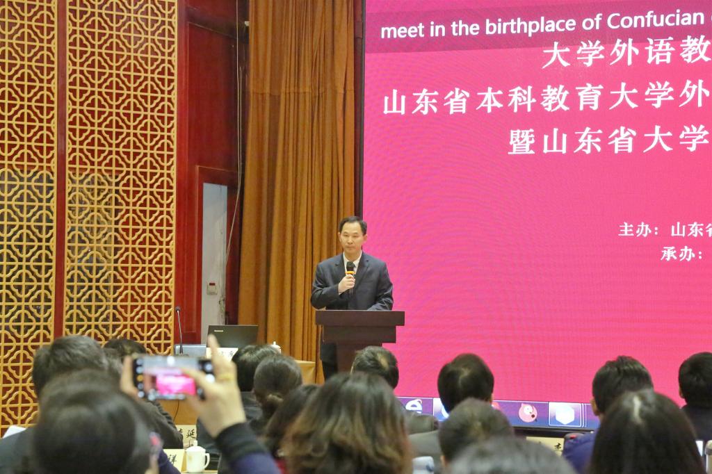 12月21日,山东省本科教育大学外语教学指导委员会第一次全体会议暨山东省大学外语教育专业委员会年会在曲阜隆重召开。教育部高等学校大学外语教学指导委员会委员、广东外语外贸大学副校长刘建达教授,教育部高等学校大学外语教学指导委员会委员、山东省大学外语教育专业委员会会长崔校平教授应邀出席大会,来自山东省本科院校的100余位大学外语负责人、专家学者以及出版专家欢聚一堂,共同探讨大学外语发展。我校副校长辛杰教授出席大会并讲话。山东省本科教育大学外语教学指导委员会主任委员、三亿(中国)主任王广成教授主持了本届年会。