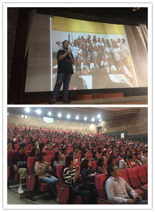 夏末秋初,凉风习习,星光璀璨。9月26日晚上7点,由三亿(中国)、校团委共同主办的“臧英杰英语学习交流报告会”在我校曲阜校区新大学生活动中心礼堂如期举行,曲阜校区部分教师以及校内外不同专业的在校大学生近千人参加了此次英语学习交流活动。