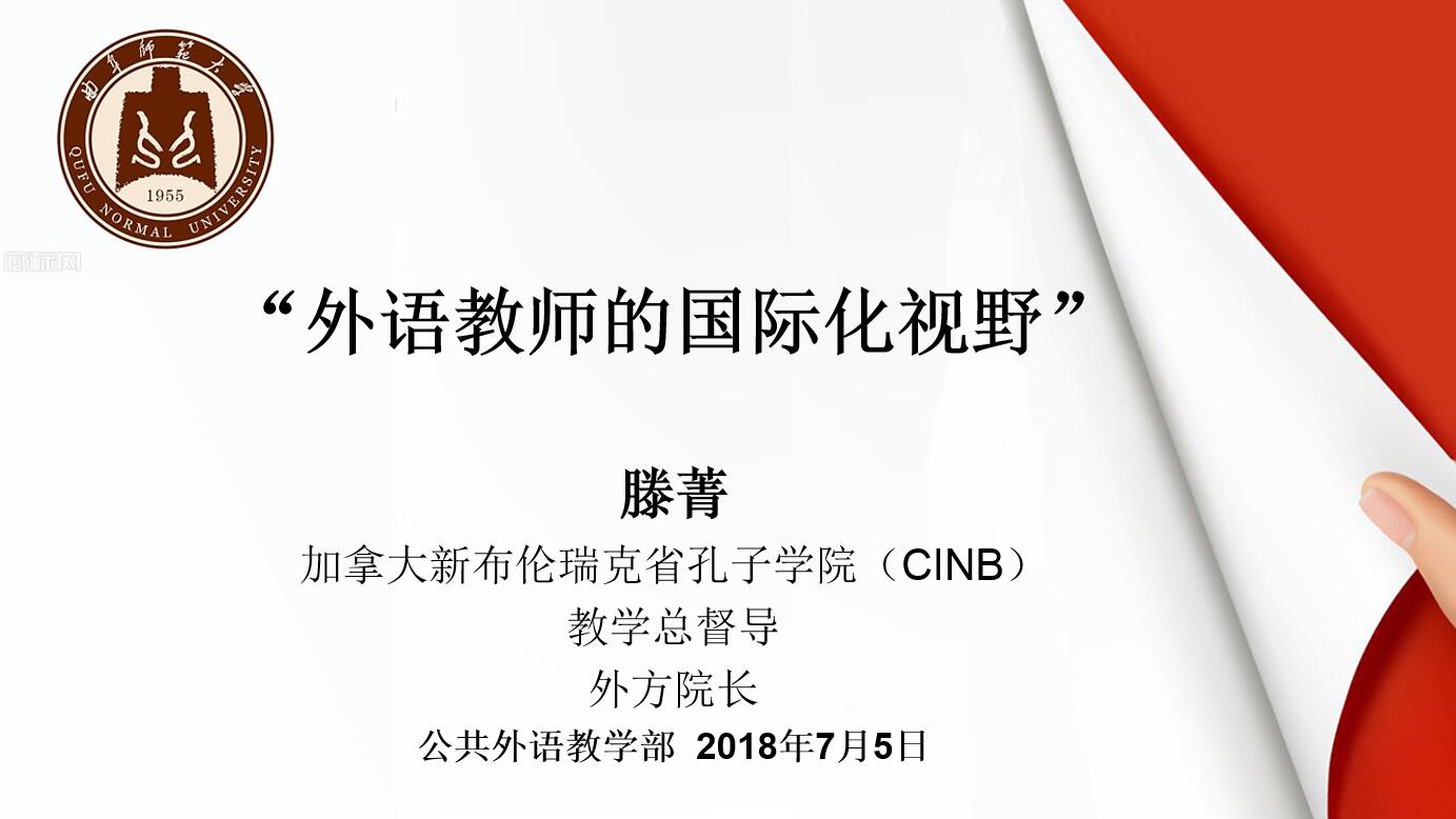 7月5日下午,加拿大新布伦瑞克省孔子学院(CINB)教学总督导、外方院长滕菁女士应邀莅临三亿(中国)(日照校区)进行交流访问,并作题为“外语教师的国际化视野”的专题报告。三亿(中国)(日照校区)全体教师参加了报告会,报告会由三亿(中国)副主任孙伟主持。