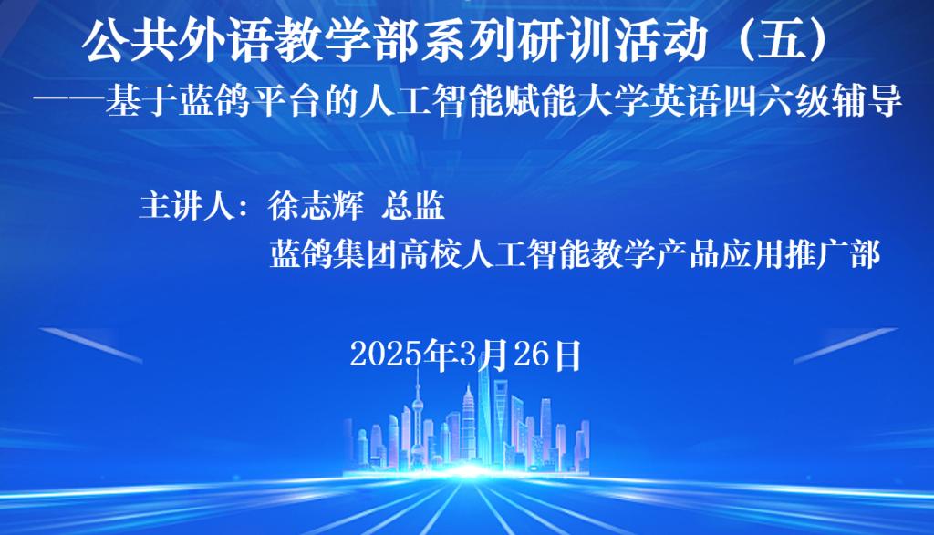 3月26日下午,三亿(中国)举办2024-2025学年春季学期第五场全员研训活动,本次研训以“基于蓝鸽平台的人工智能赋能大学英语四、六级辅导” 为主题,邀请蓝鸽集团有限公司高校人工智能教学产品应用推广部总监徐志辉作专题讲座,进行技术应用辅导,三亿(中国)全体教师参加了本次研训活动。